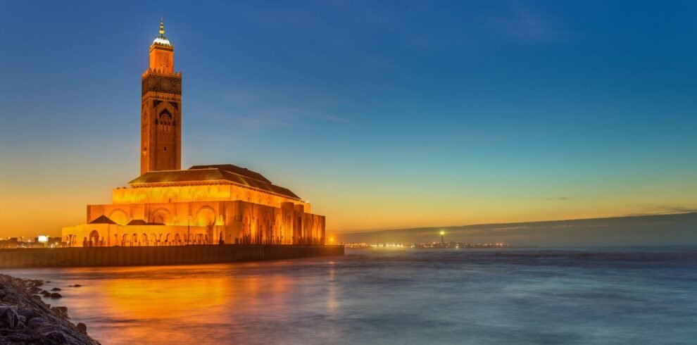Morocco’s largest city blends modern flair with cultural heritage. Visit the striking Hassan II Mosque,